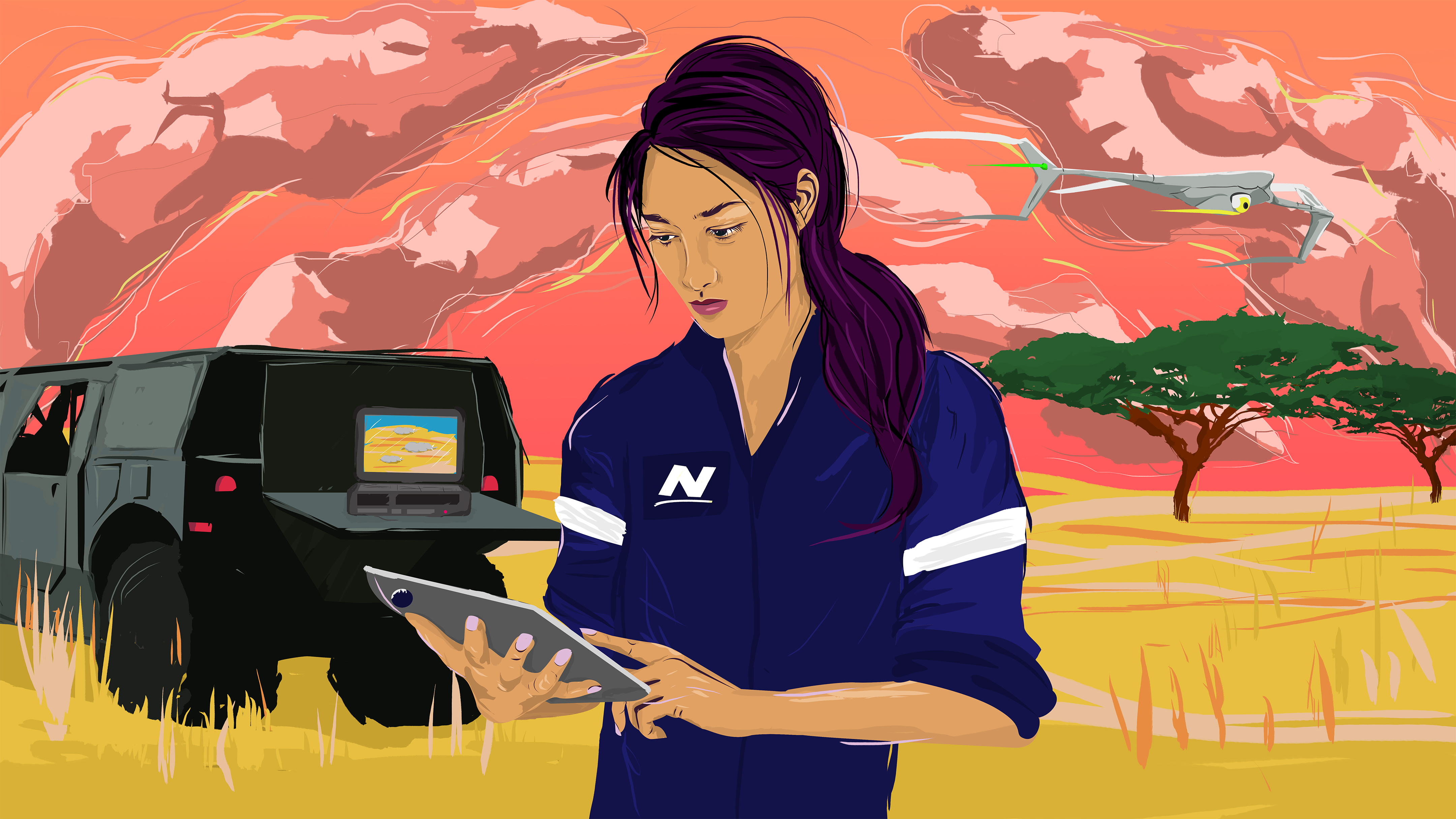 Illustrations for a Grunman graphic novel showing their capabilities.